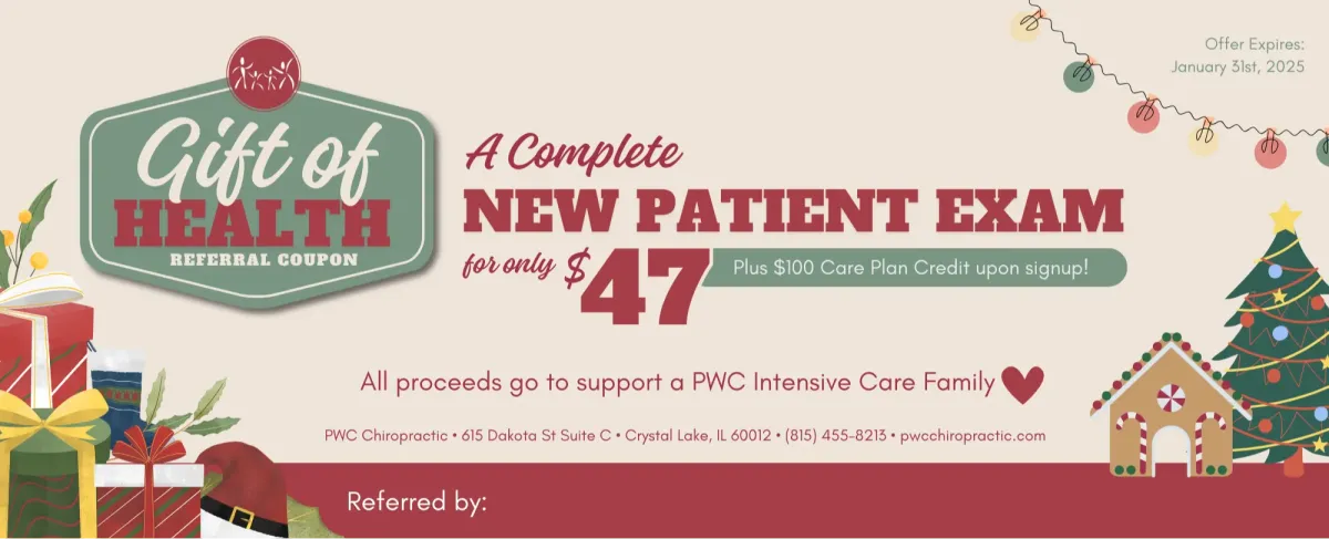 Valid thru January 31st, 2025 - so that you can use it during December to combat the holiday stress if you’d like, or you can get started in January as part of your healthy New Year’s Resolutions! Let us help you get your health back and at full steam in 2025!